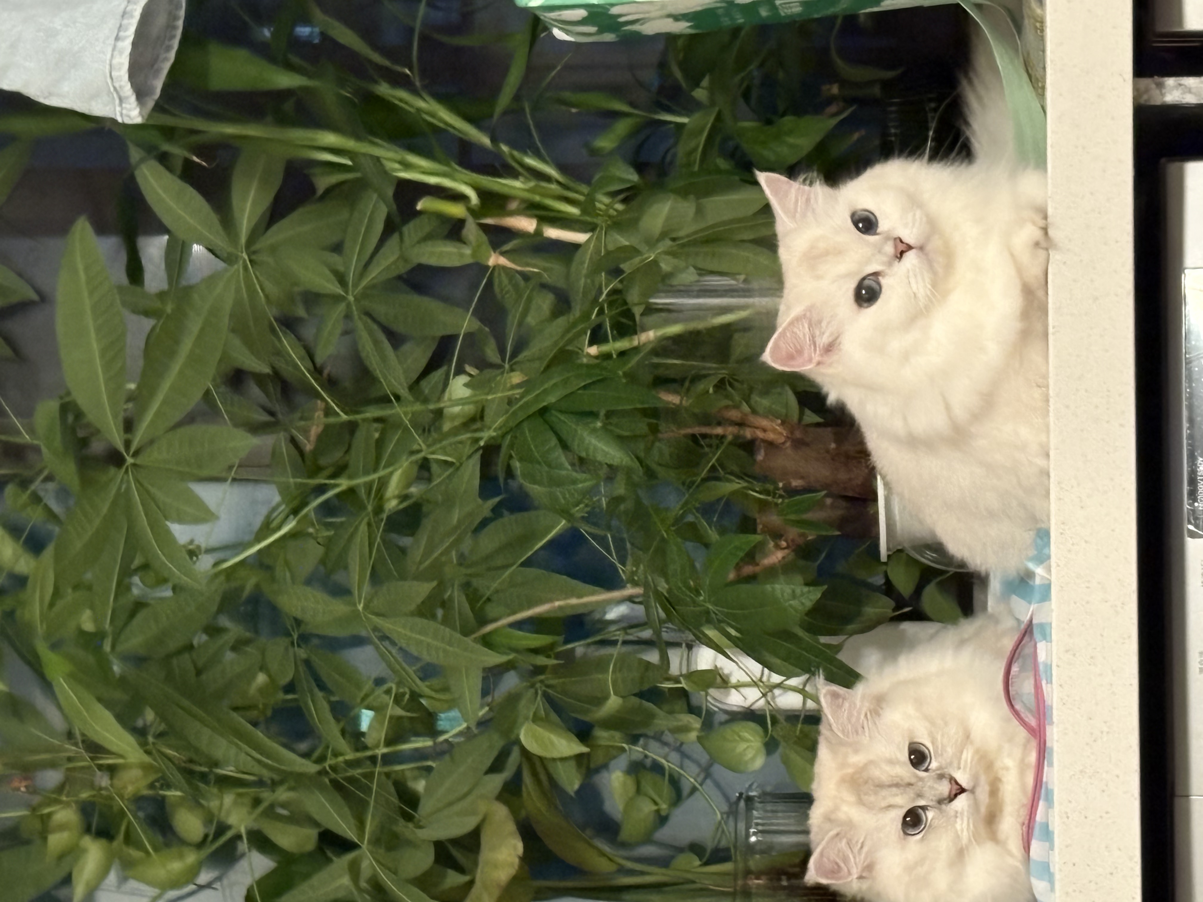 虽然大咪和小咪是母女关系,但是分开好久。大咪家送过来没拿大咪自己的猫砂盆,要和小咪一块用。实际上并不是……特别好。