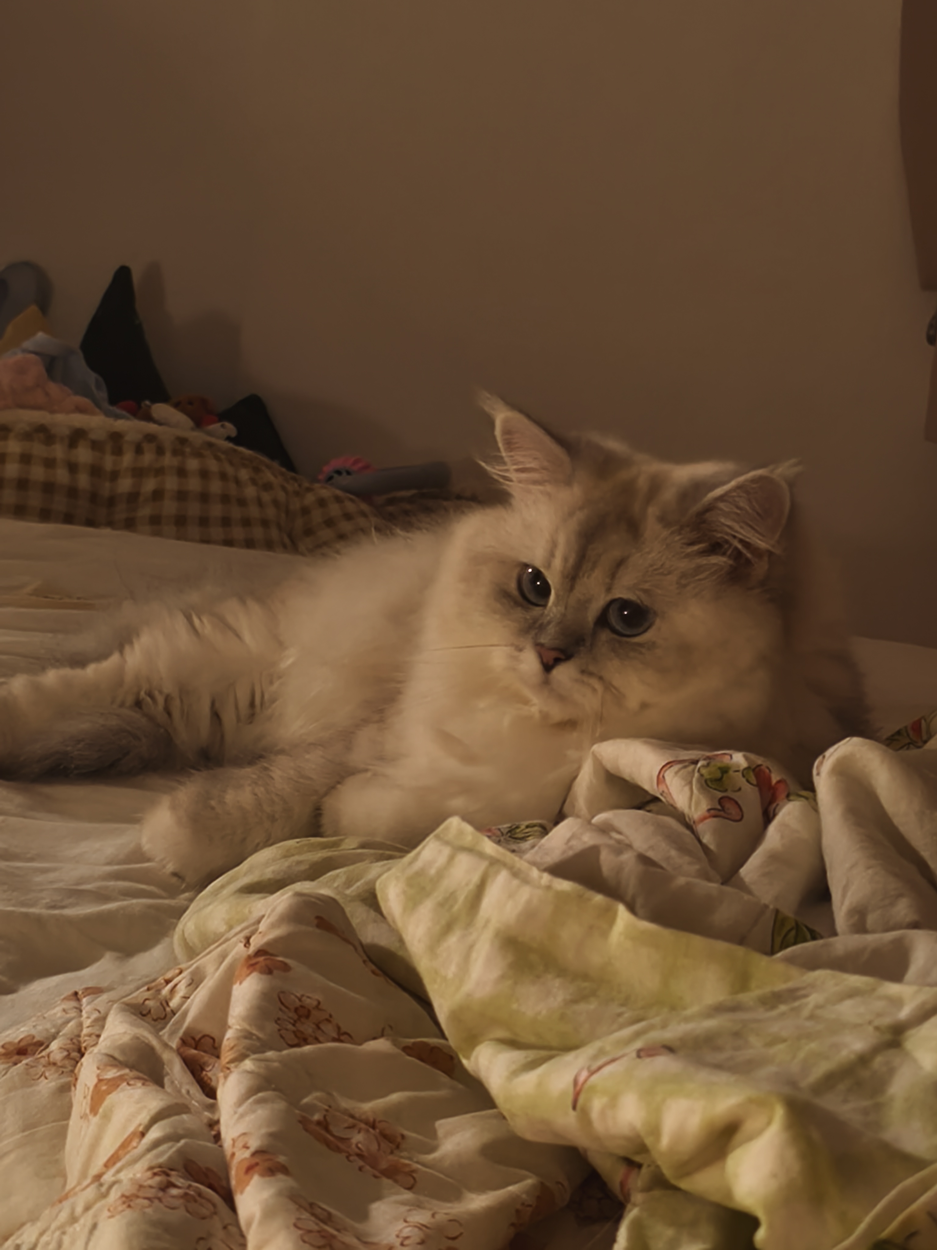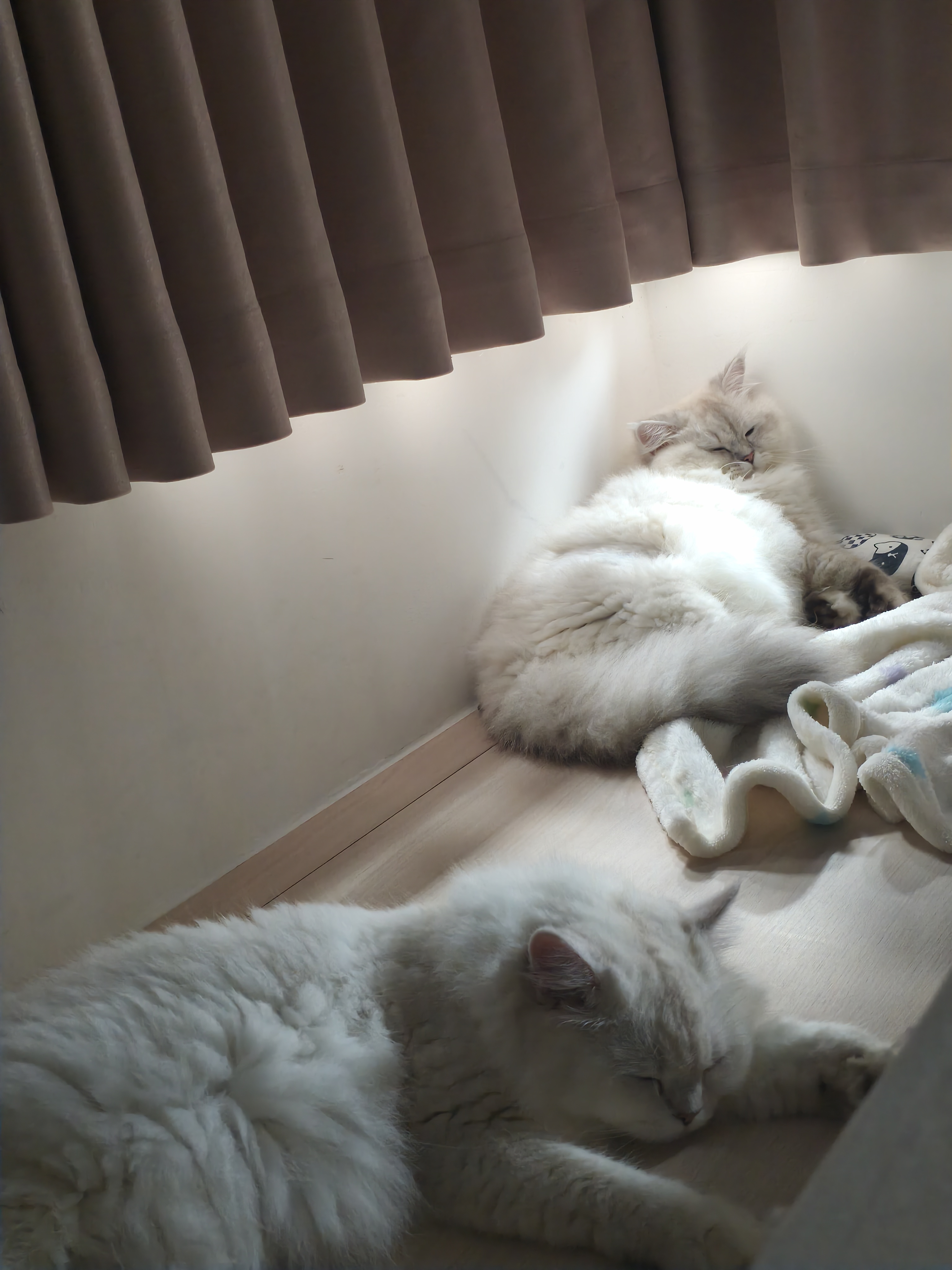 第八天晚上十一二点,按时间来说,当时两只猫应该回床尾各瘫各的了,但这天很异常。