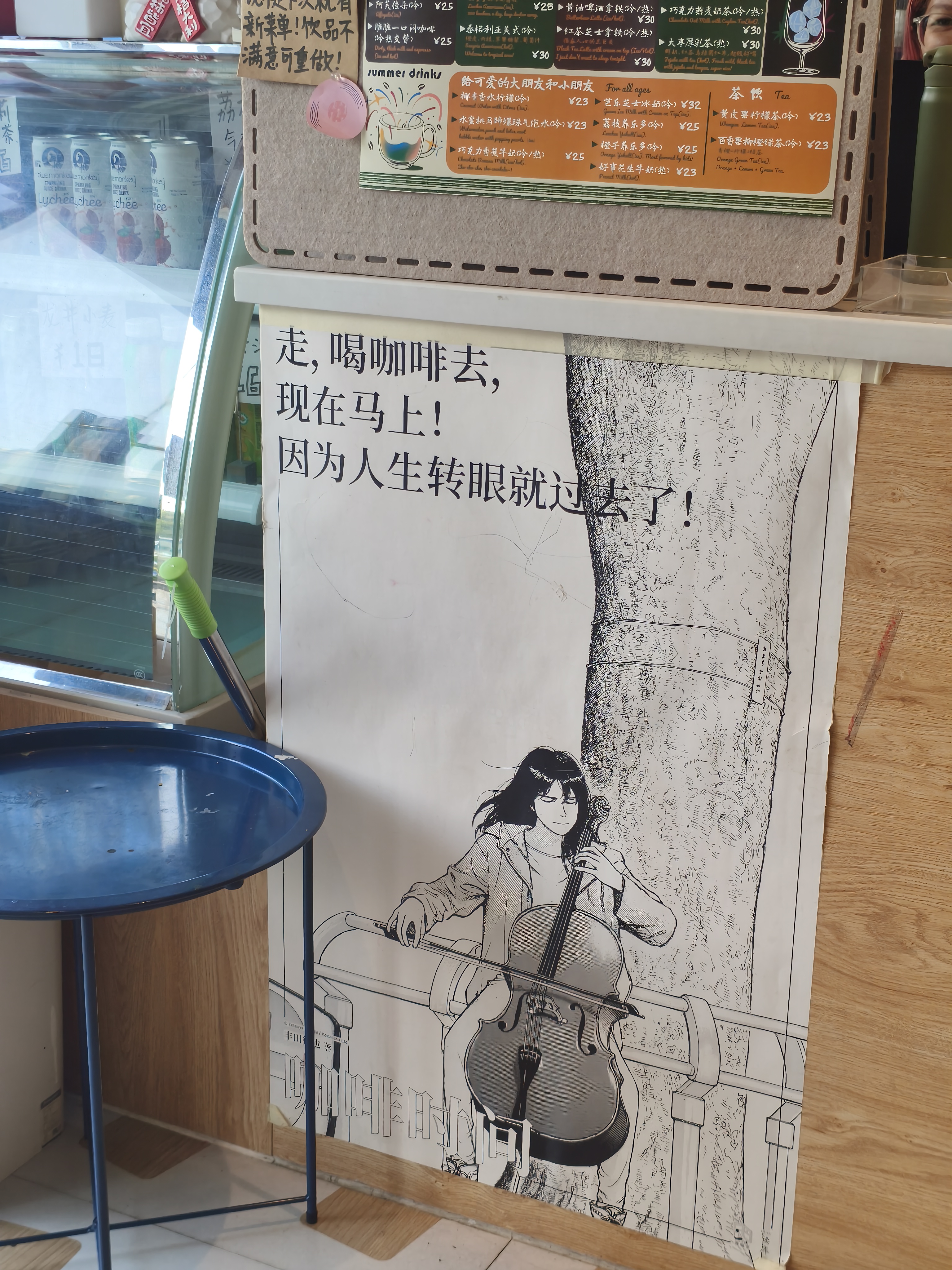 稍晚一会,咖啡喝完了,小鲨拎着咖啡杯下来加冰水。